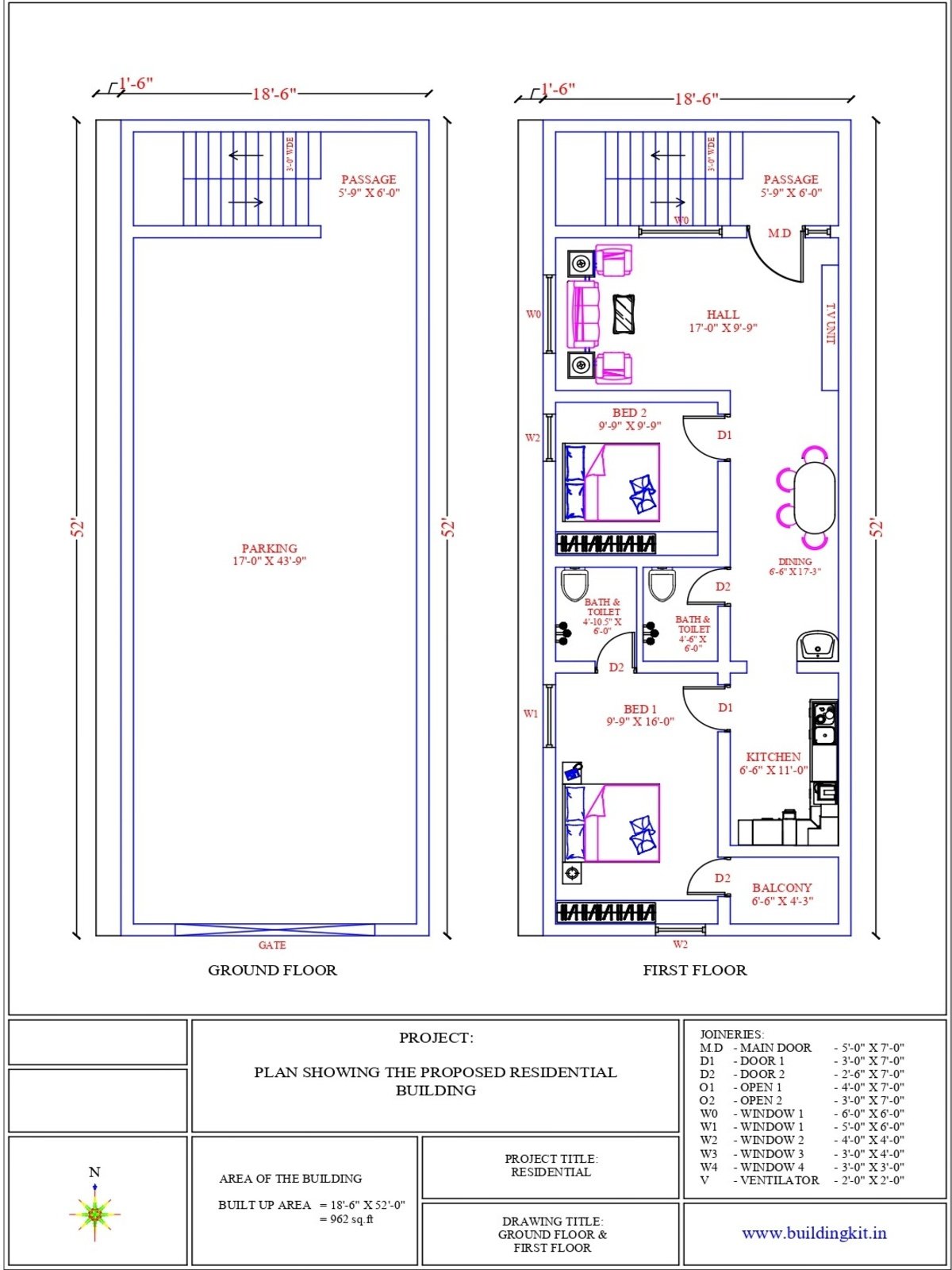 18’0″ x 60’0″ 2BHK