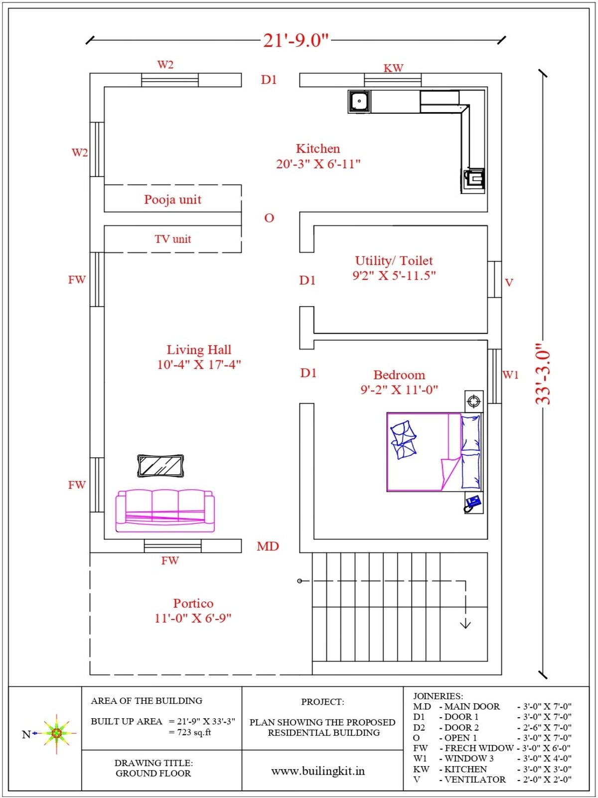21’9″ x 33’3″ 1BHK
